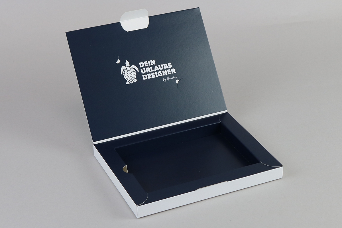 Individuell bedruckte Boxen sind die ideale Lösung, um Reiseunterlagen und Reisegutscheine hochwertig zu übergeben. Sie schützen nicht nur wichtige Dokumente, sondern inszenieren die Reise bereits beim Öffnen als besonderes Erlebnis.
