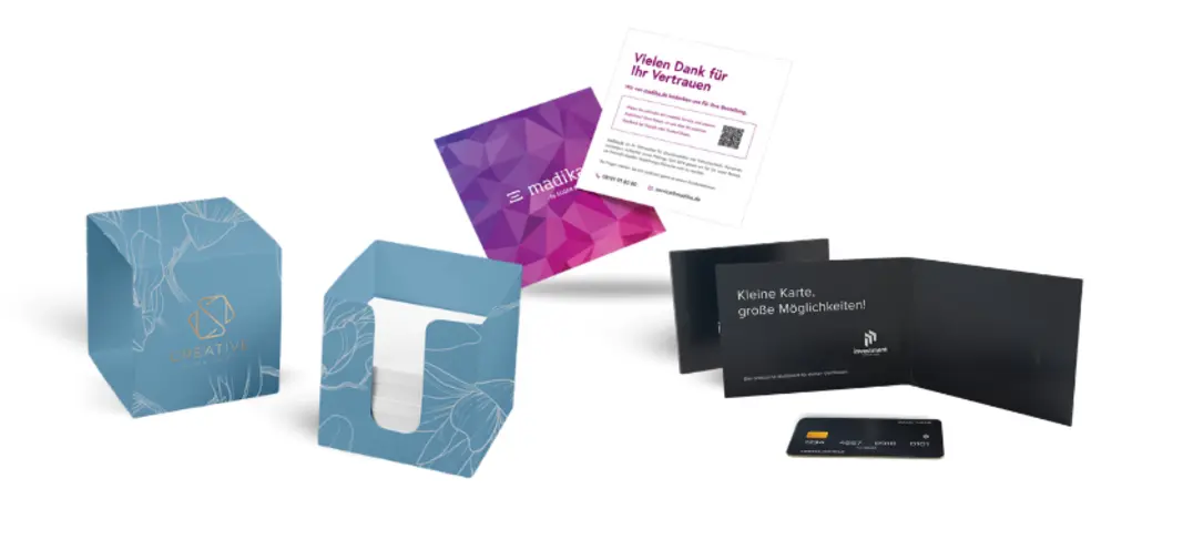 Messen und Events sind ideale Gelegenheiten, um Ihr Unternehmen optimal in Szene zu setzen. Mit individuell gestalteten Präsentationsmappen, Visitenkartenhaltern, Tischaufstellern oder Flyerverpackungen heben Sie sich von der Konkurrenz ab. Hochwertiges gedrucktes Marketingmaterial sorgt für einen professionellen Auftritt und bleibt in Erinnerung. Nutzen Sie unsere bedruckten Printprodukte, um Ihre Produkte und Dienstleistungen stilvoll zu präsentieren.