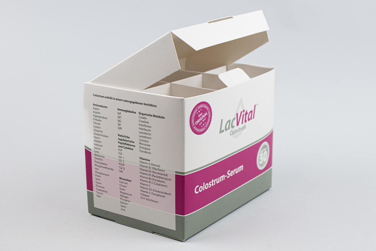 Faltschachteln gehören zu den beliebtesten Verpackungslösungen für Nahrungsergänzungsmittel. Sie umhüllen Kunststoffdosen oder Glasbehälter und bieten: