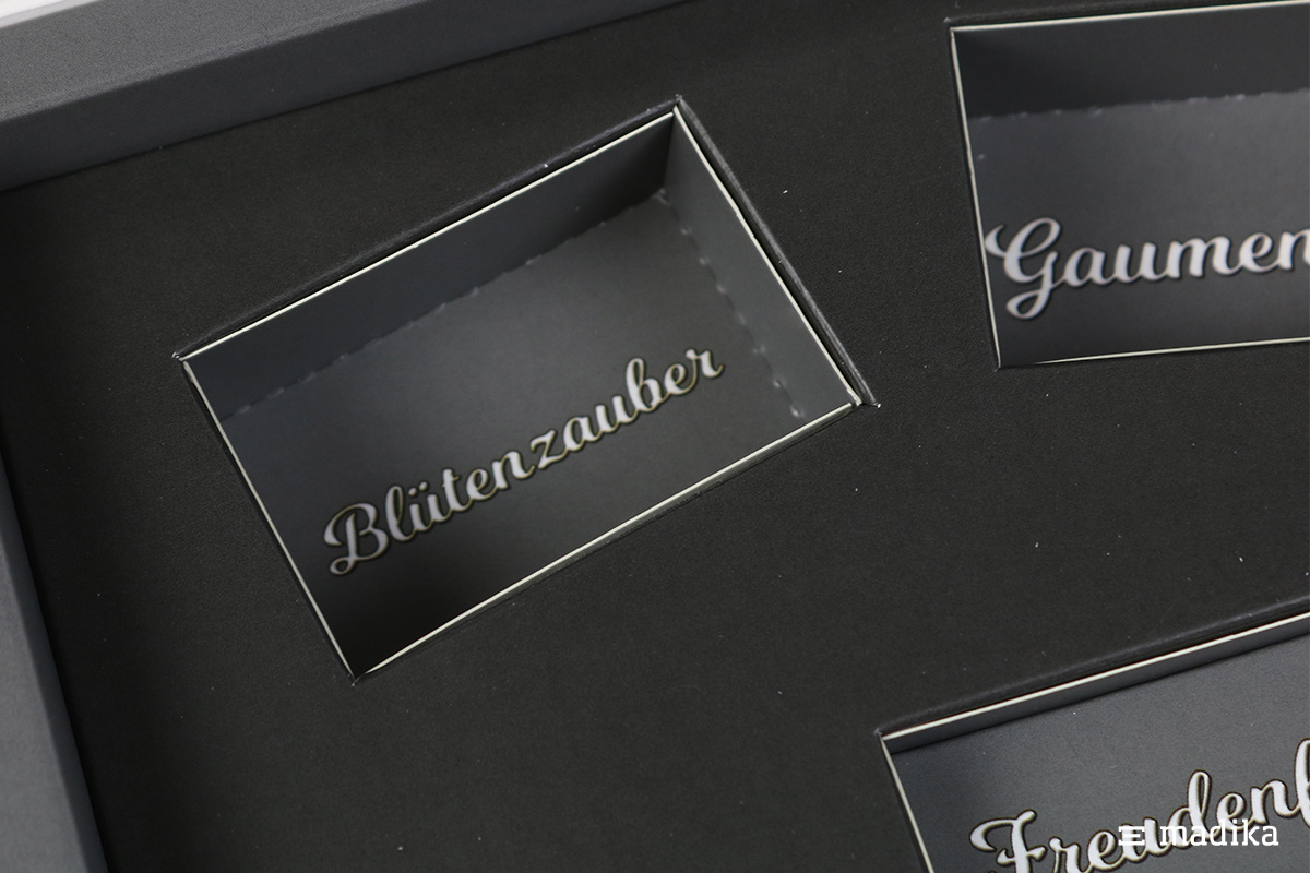 Wir können mehr als „nur“ Verpackung. Wir sind Ihr kompetenter Partner, wenn es um das Rund-um-Paket geht. Wir konstruieren für Sie passende Inlays, beraten Sie gerne dabei, mit welchen Tricks, Sie die Aufmerksamkeit auf sich ziehen. Gerne bestücken wir auch Ihre Verpackung und machen Sie fertig für den Versand. Wir verwirklichen Ihre Vorstellungen, und sorgen für ein „Wow-Erlebnis“.