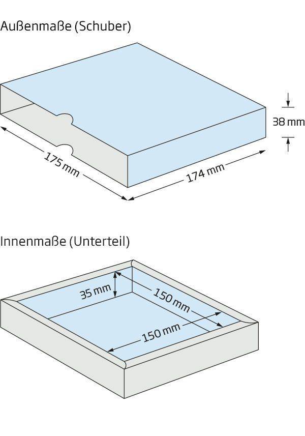 Technische Daten – Schiebeschachteln Hohlwand geschlossen - Quadrat L - 38 mm Höhe
