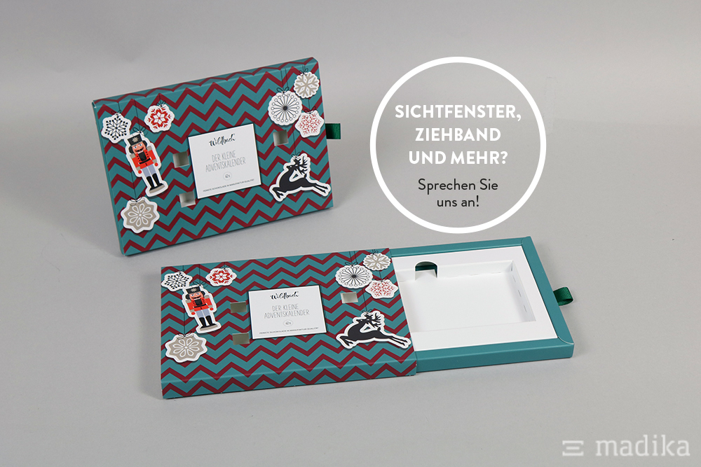 Jetzt Ihre Wunsch Schiebeschachtel kaufen und von allen madika-Vorteilen profitieren! Dazu gehören individuelle Inlay-Konstruktionen für Ihre Geschenksets oder mehrteiligen Produkte sowie viele Bedruckungs-und Veredelungsmöglichkeiten. Die Schiebeschachteln werden immer aufgebaut geliefert - optional können Sie auch noch die Konfektionierung dazubuchen.