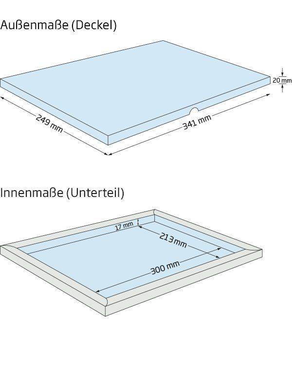 ca. 300 x 213 x 17 mm für Produkte in DIN A4
